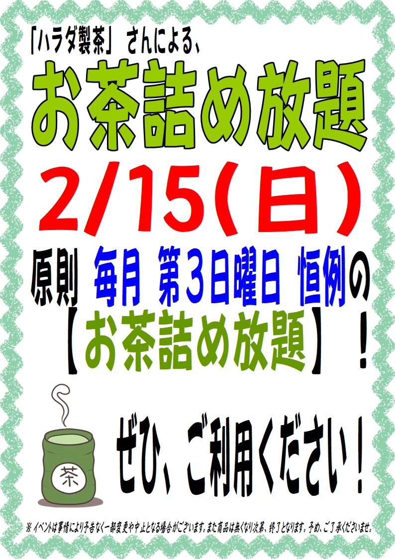 2/14(土)・15(日)に以下の店頭販売を行います。