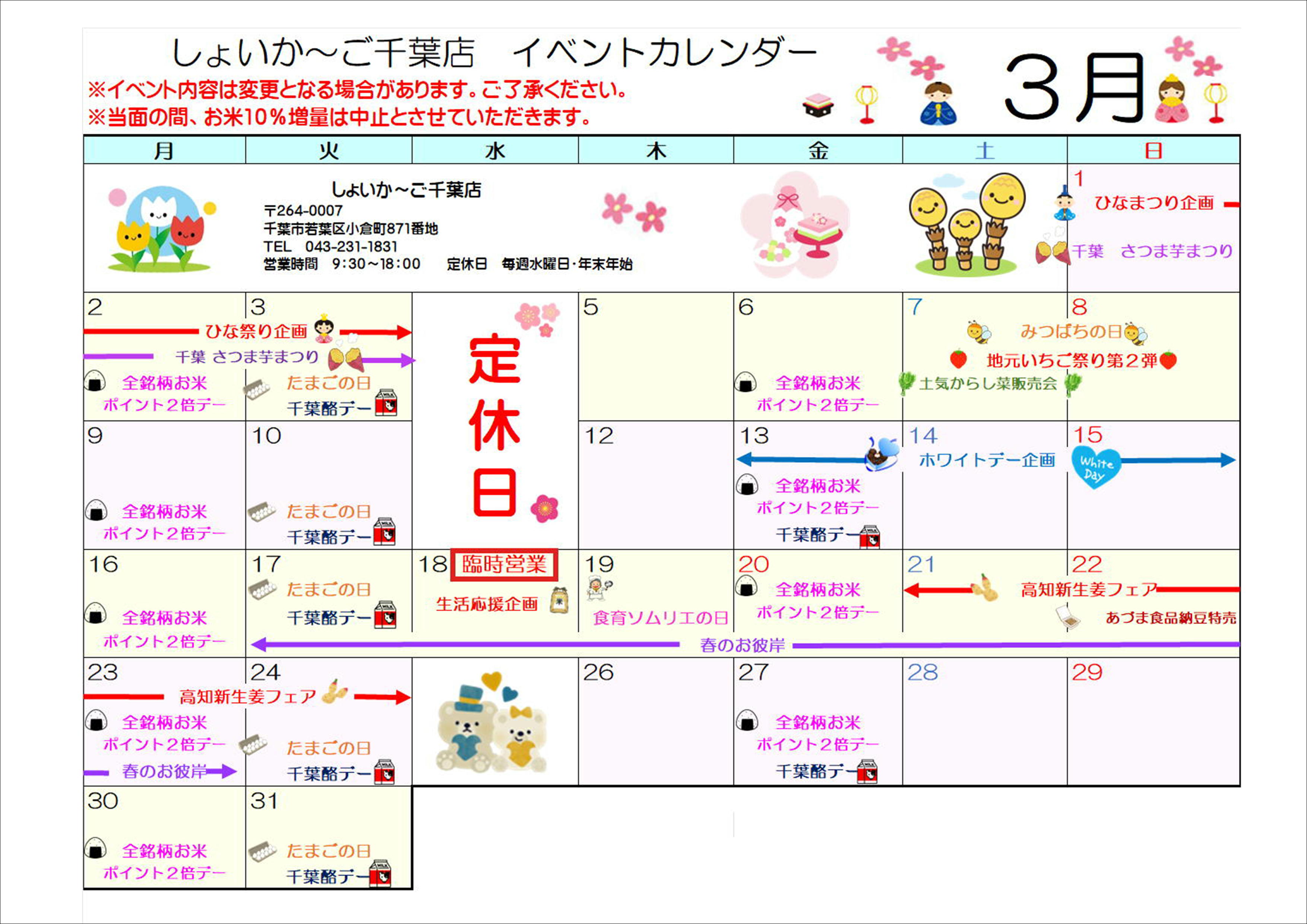 ◇3月のしょいか~ご千葉店情報◇
