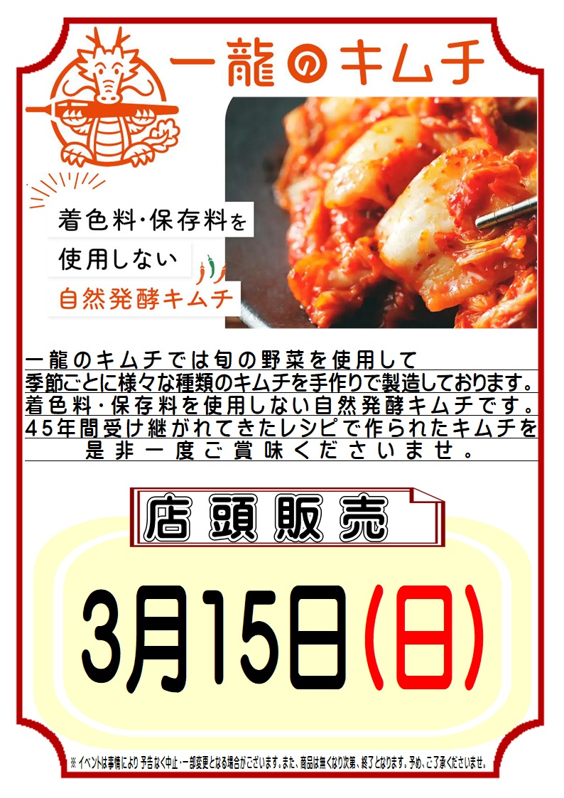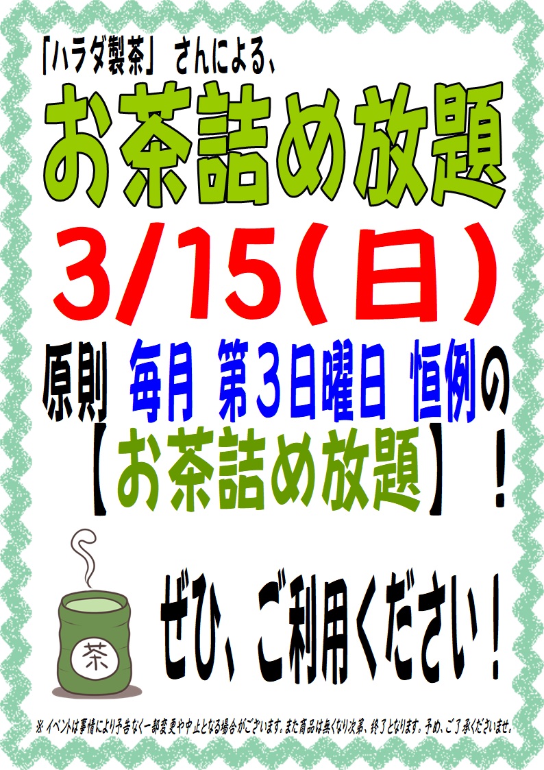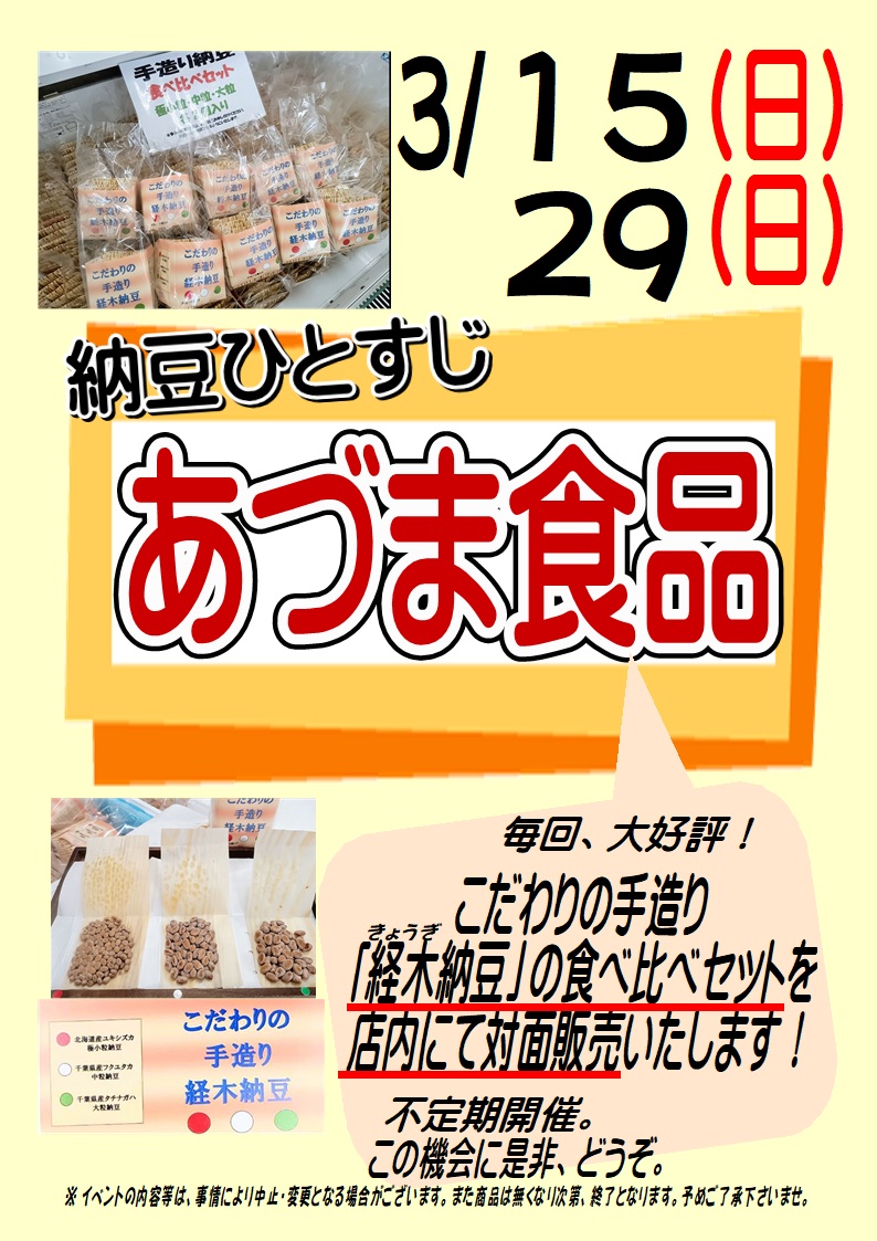 3/14(土)・3/15(日)に以下の店内・店頭販売を行います。