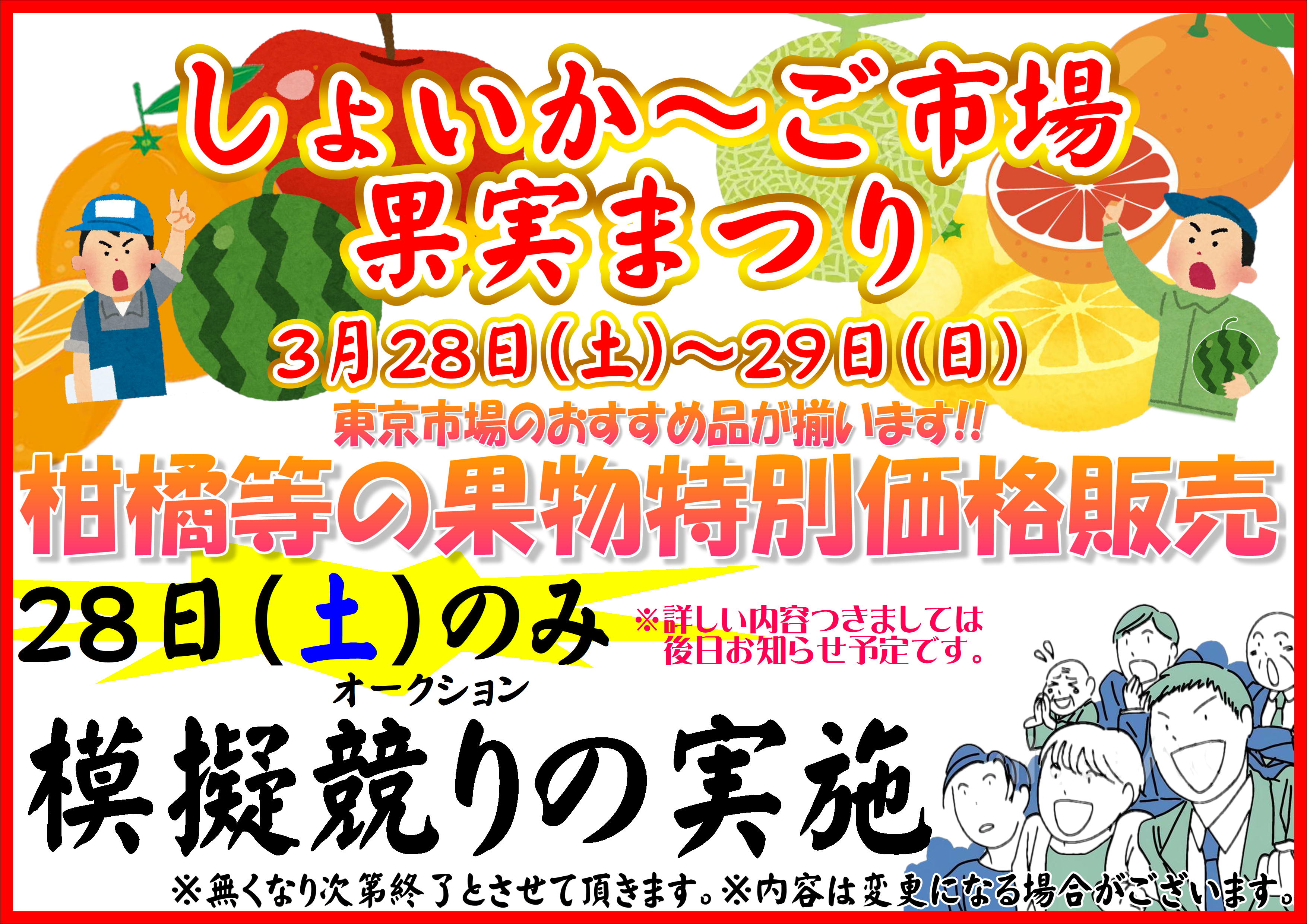 3月28日(土)~29日(日)はしょいか~ご市場果実まつりです!