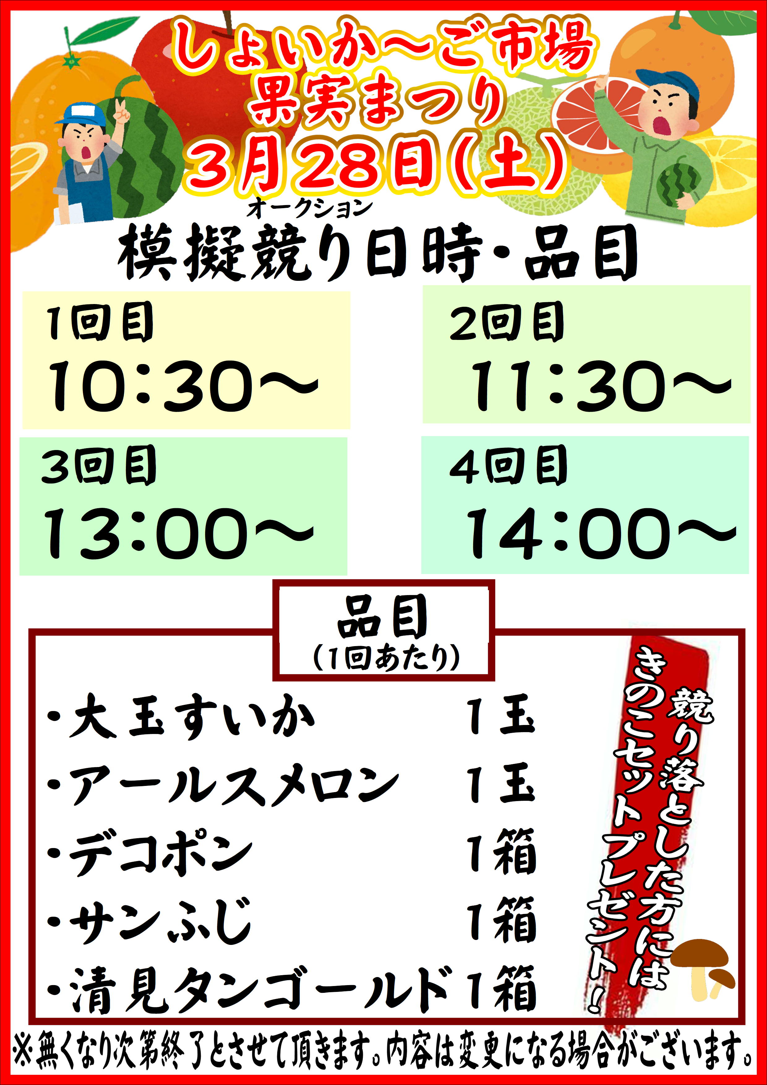 3月28日(土)~29日(日)しょいか~ご市場果実まつり