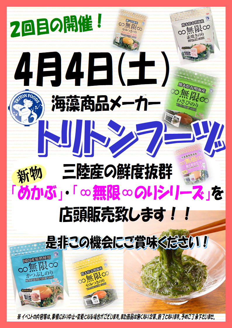 また同日には海藻商品メーカーの「トリトンフーヅ」さんよります