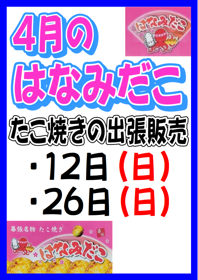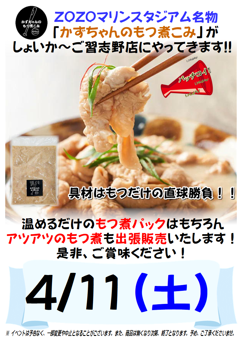 しょいか~ご習志野店では4/11(土)・12(日)に以下の出張販売を行います。