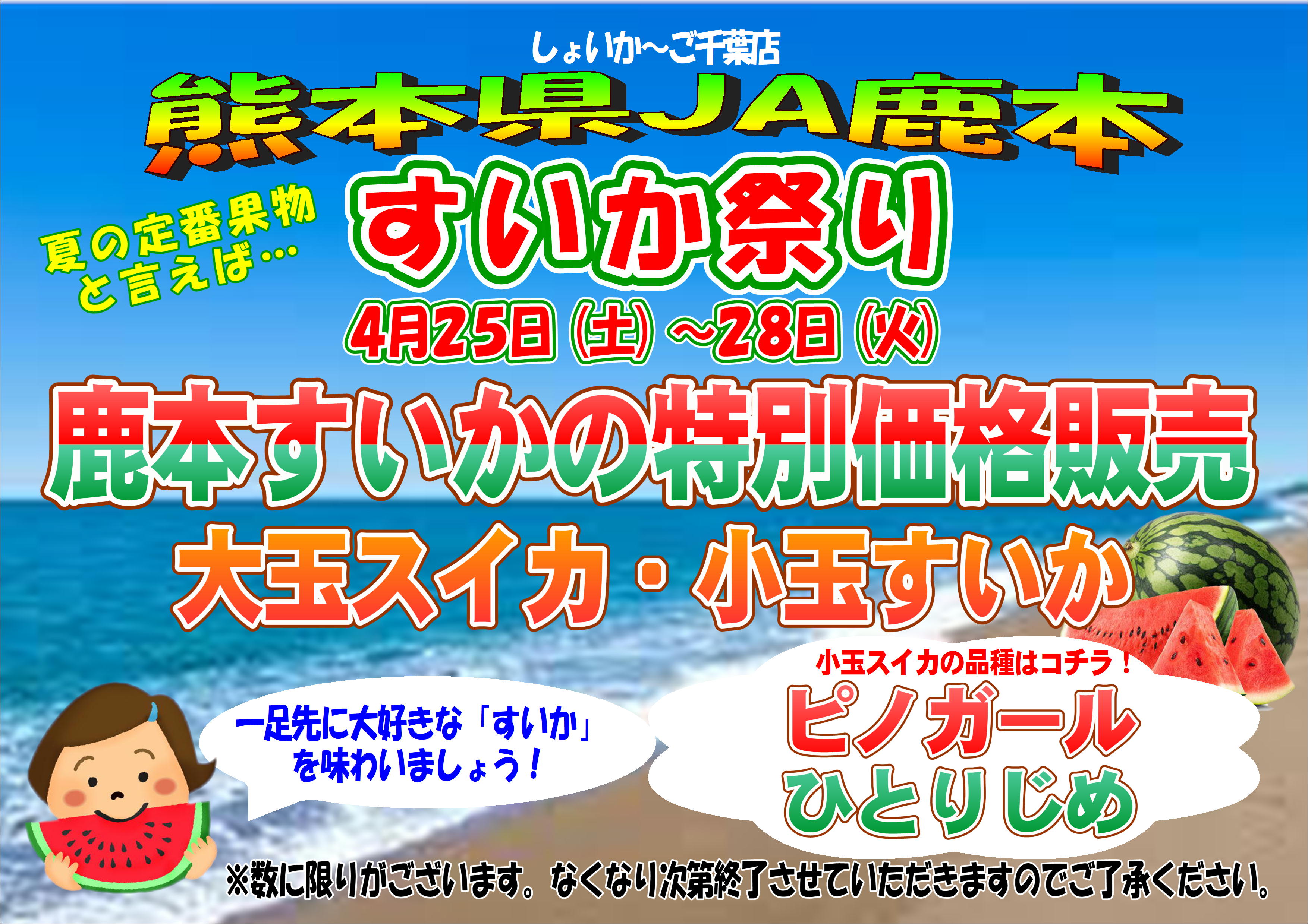 4月25日(土)~28日(火)熊本県JA鹿本すいか祭り