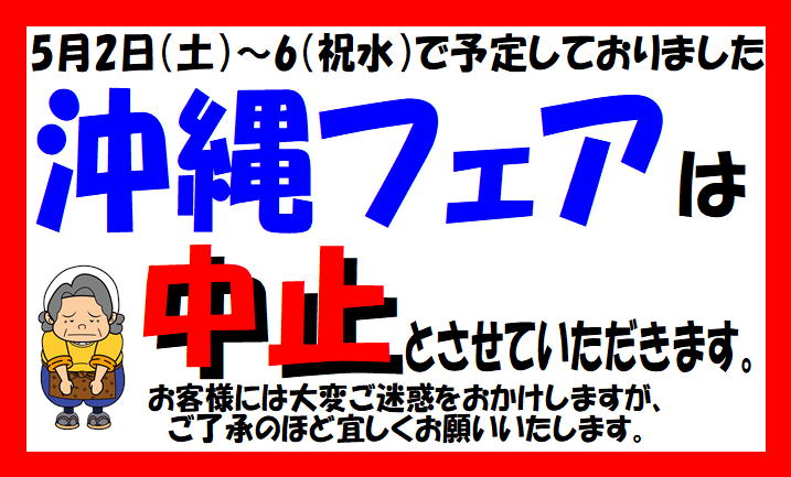 5月2日(土)~6日(祝水)に予定しておりました「沖縄フェア」ですが、