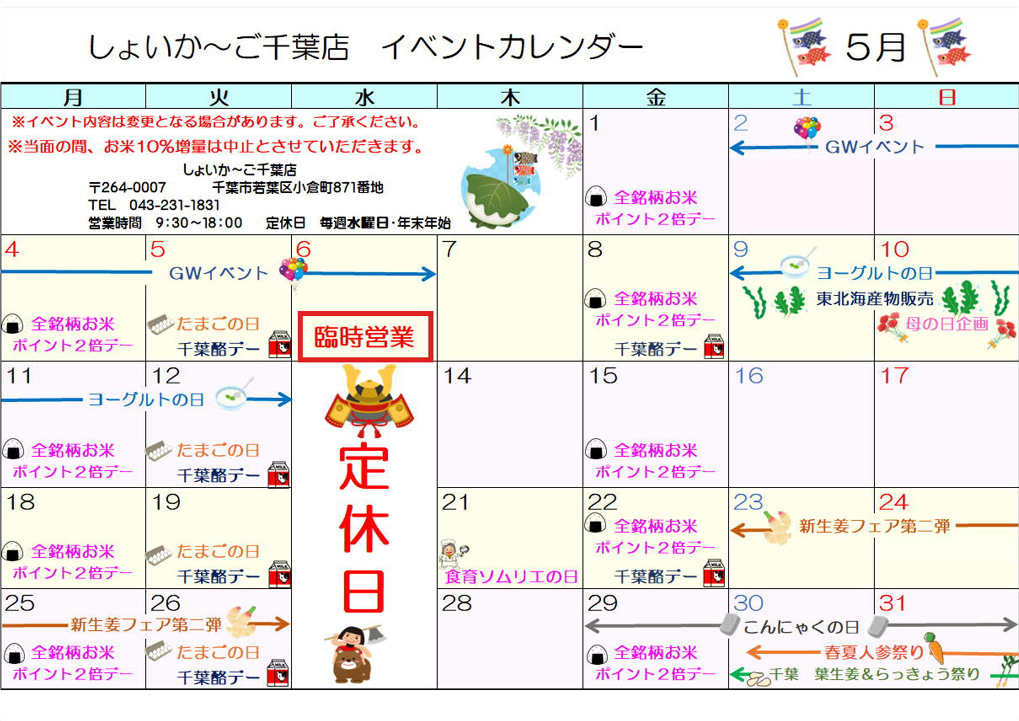 ◇5月のしょいか~ご千葉店情報◇
