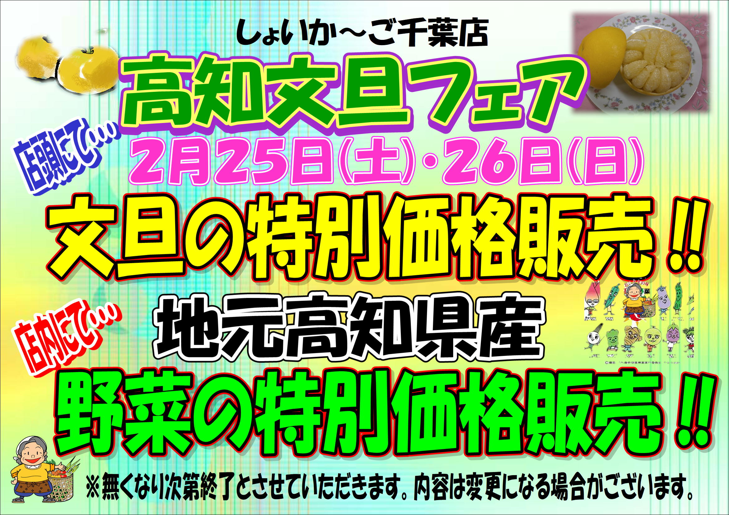 さて、しょいか~ご千葉店では、2月25日(土)・26日(日)にJA高知による文旦フェアを開催いたします。