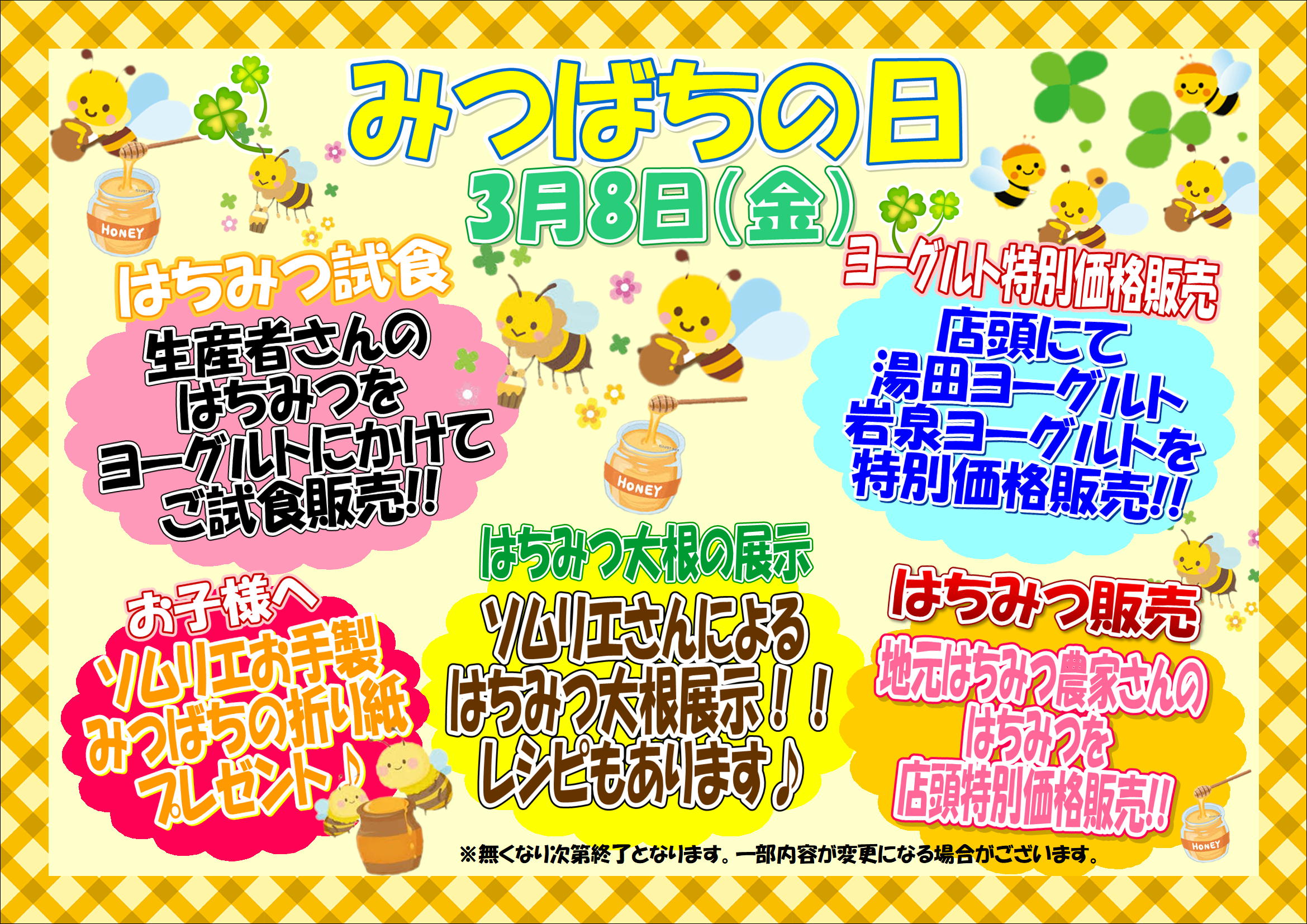 3月8日(金)千葉店では、ソムリエによる「みつばちの日」を開催いたします。