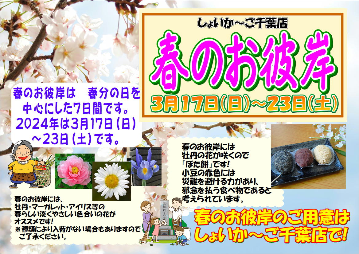 3/17(日)~23(土)しょいか~ご千葉店【春のお彼岸】