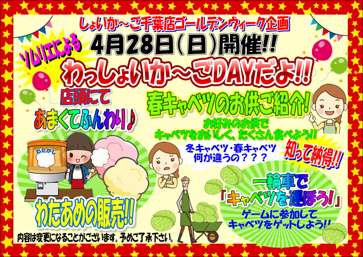 しょいか~ご千葉店ではゴールデンウィーク期間、様々なイベントをご用意して皆様のご来店を