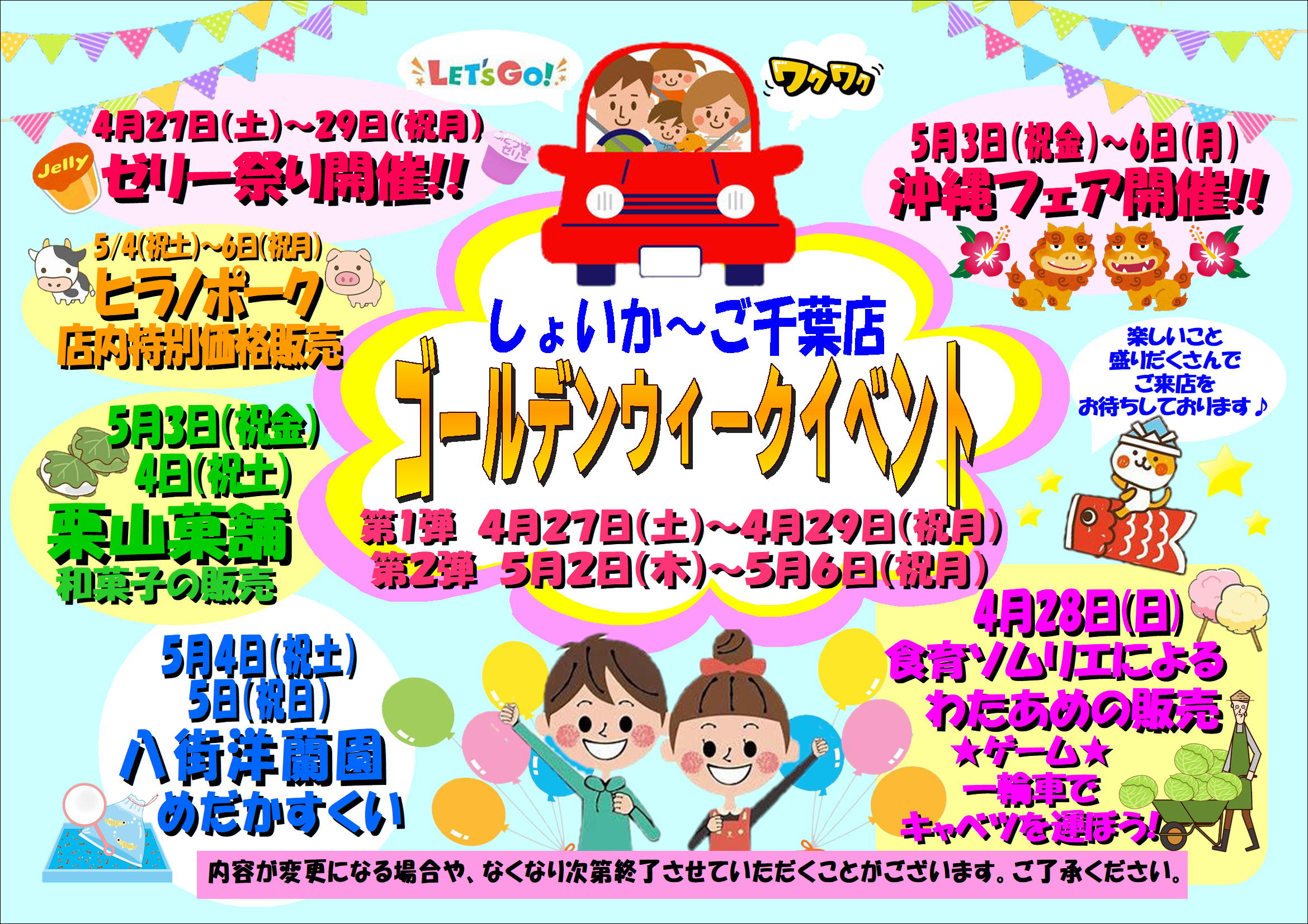 千葉店ゴールデンウィークイベント第1弾4/27(土)~29(祝月) 第2弾5/2(木)~6日(祝月) 訂正版