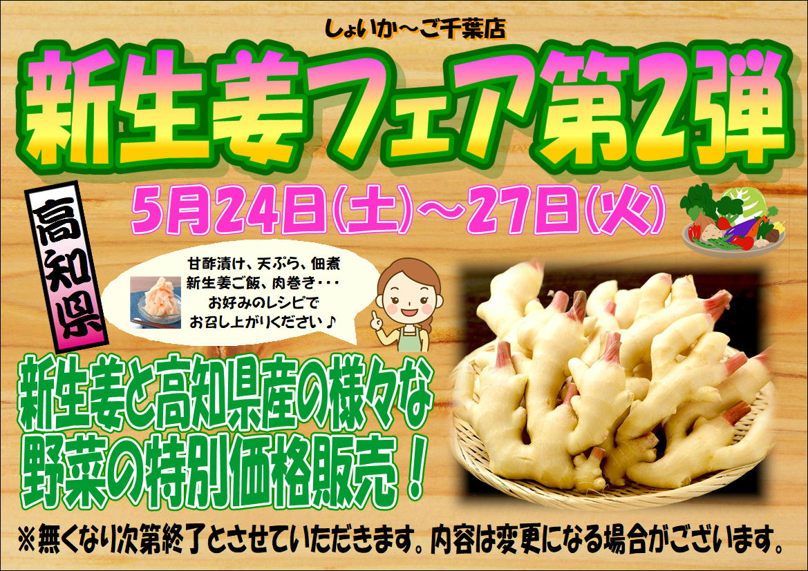 5月24日(土)~27日(火)【新生姜フェア第2弾】