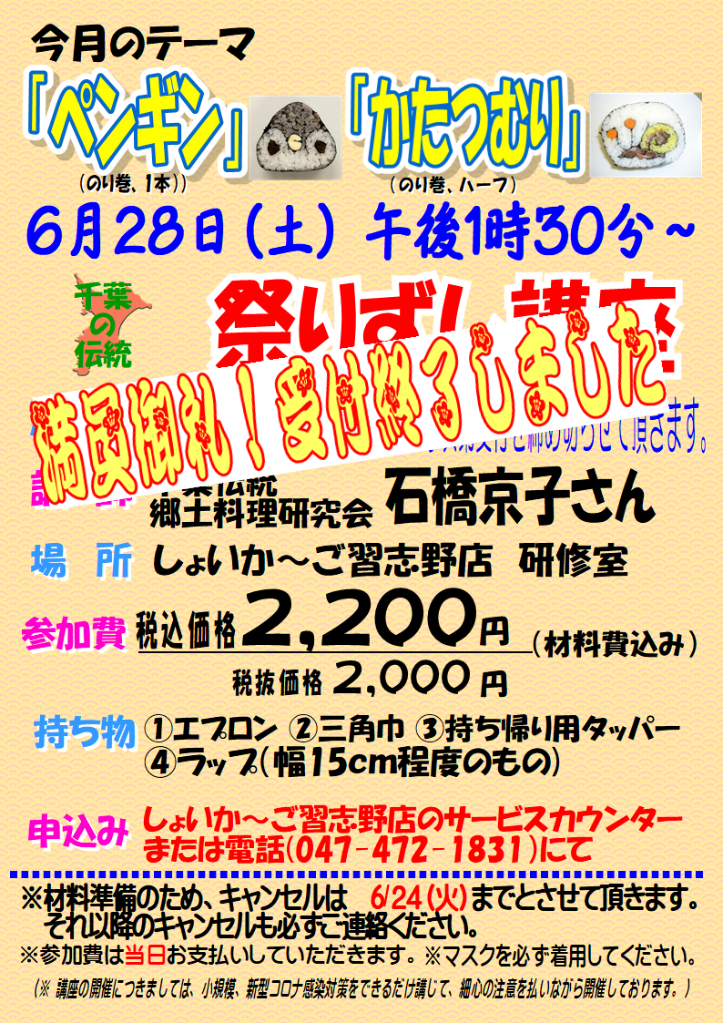 満員御礼 受付終了 6/28 (土) 13:30開始 「祭りずし講座」