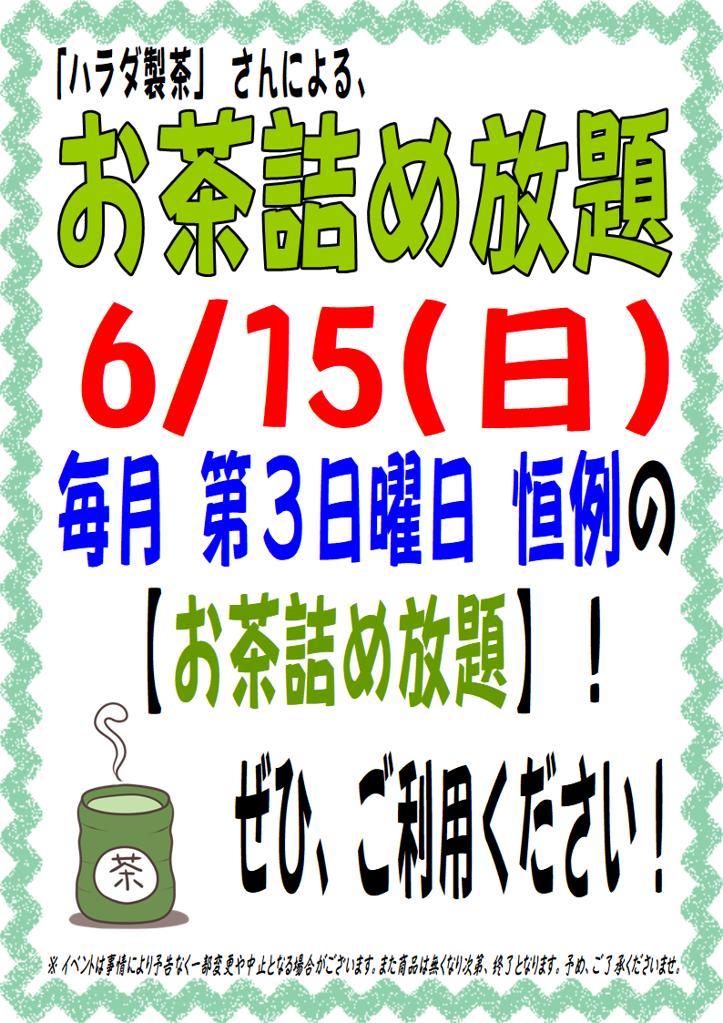 月に一度、第三日曜日恒例「お茶の詰め放題」