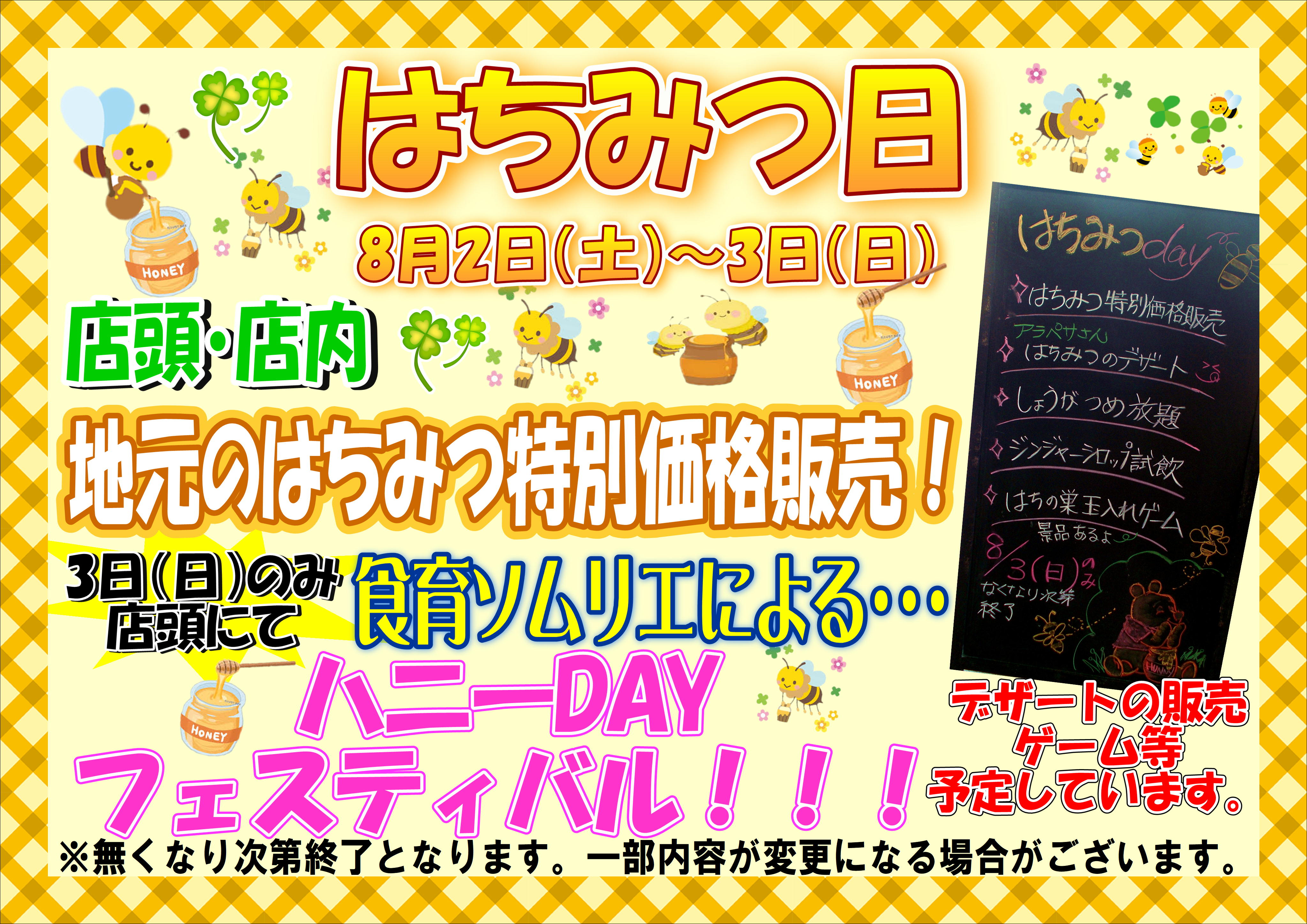 皆様、大変お待たせいたしました!大好評の「はちみつday」を、8月3日(日) に開催します!