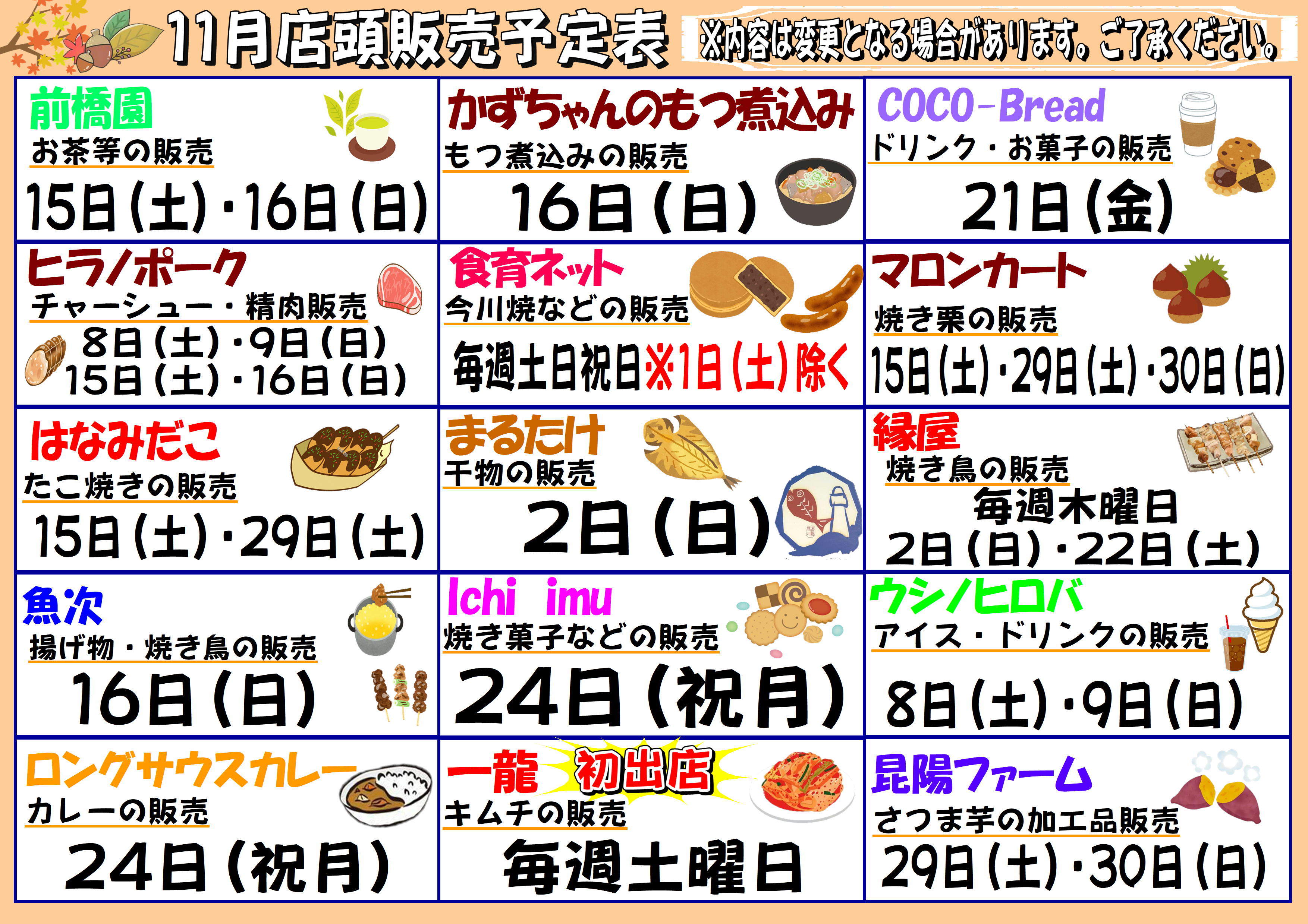 (イベント・店頭販売は変更がある場合があります。ご了承くださいませ)