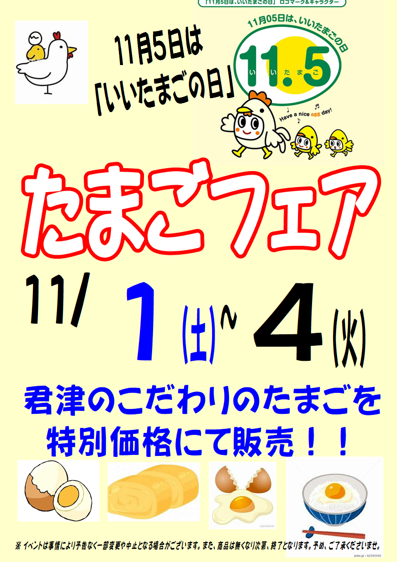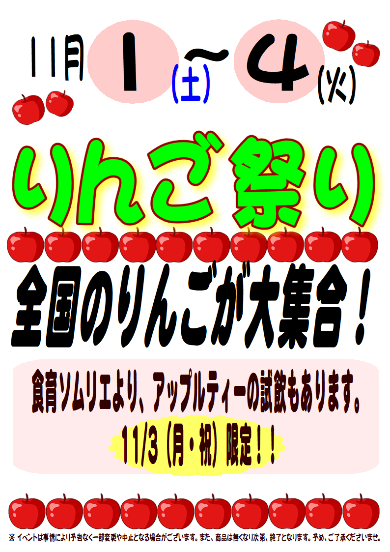 11/1~4「たまごフェア」・「りんご祭り」& 11/1「河内屋」さん店頭販売