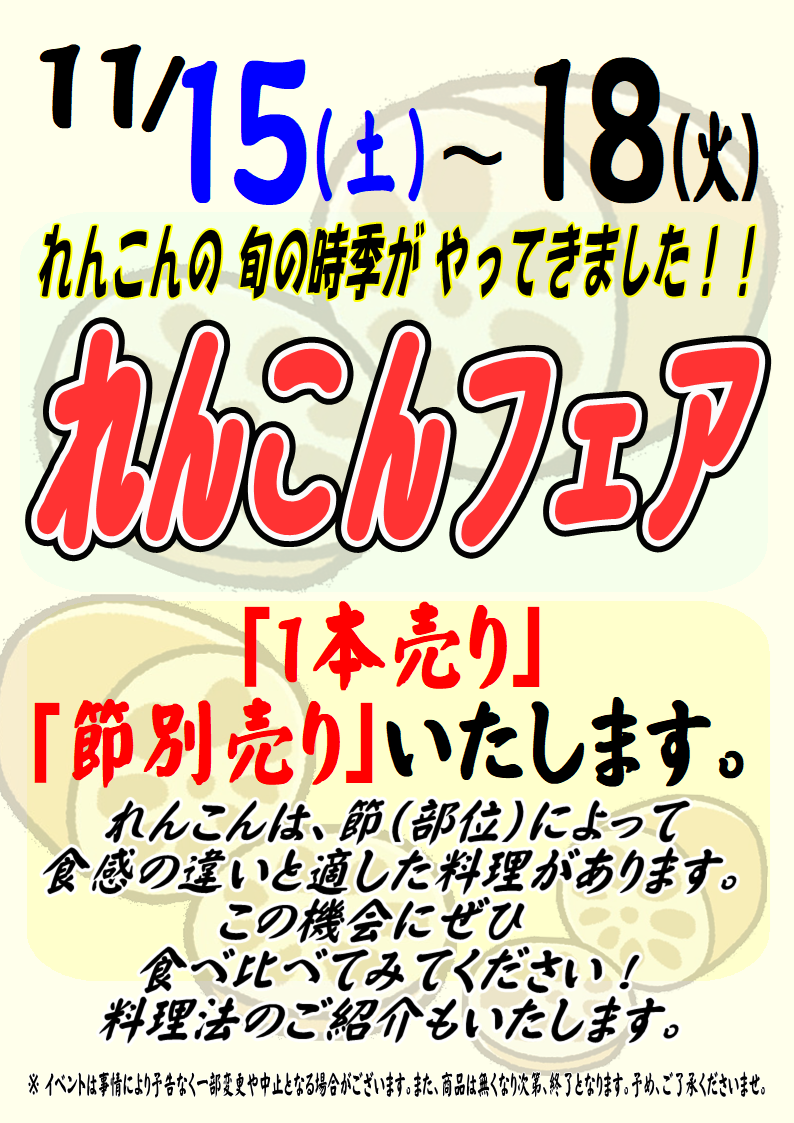 11/15(土)~18(火) 「れんこんフェア」 & 店頭販売