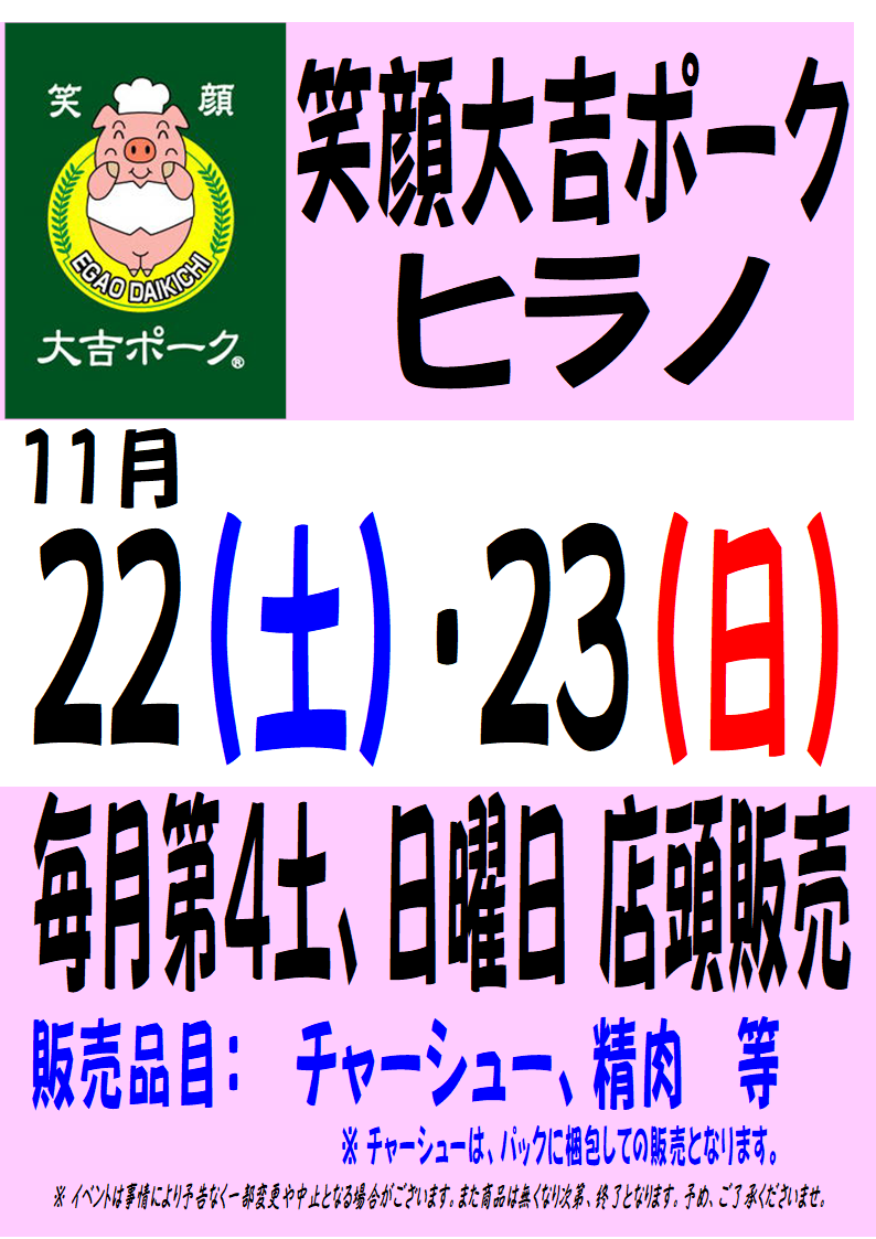 しょいか~ご習志野店では11/22(土)~24(月・振休)の期間、