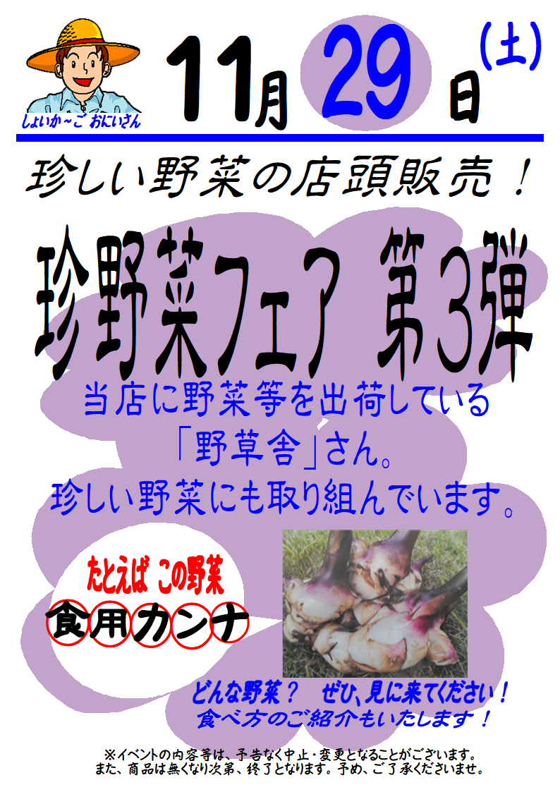 11/29「珍野菜フェア 第3弾」
