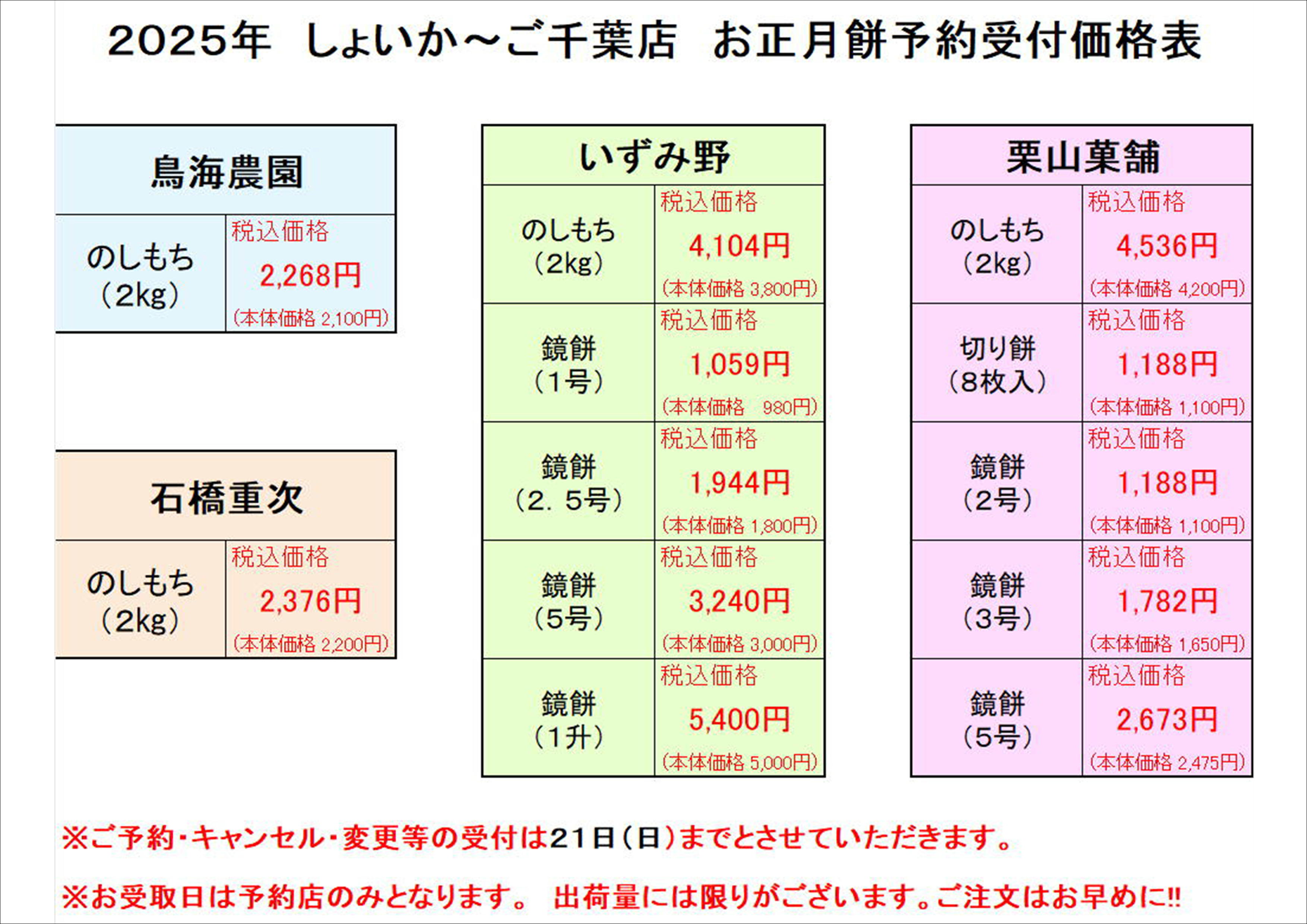 しょいか~ご千葉店 年末おもちのご予約について