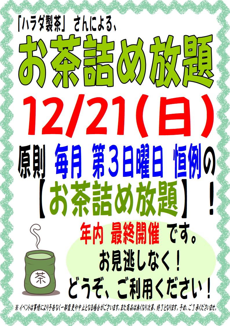 しょいか~ご習志野店では、12/20(土)・21(日)に