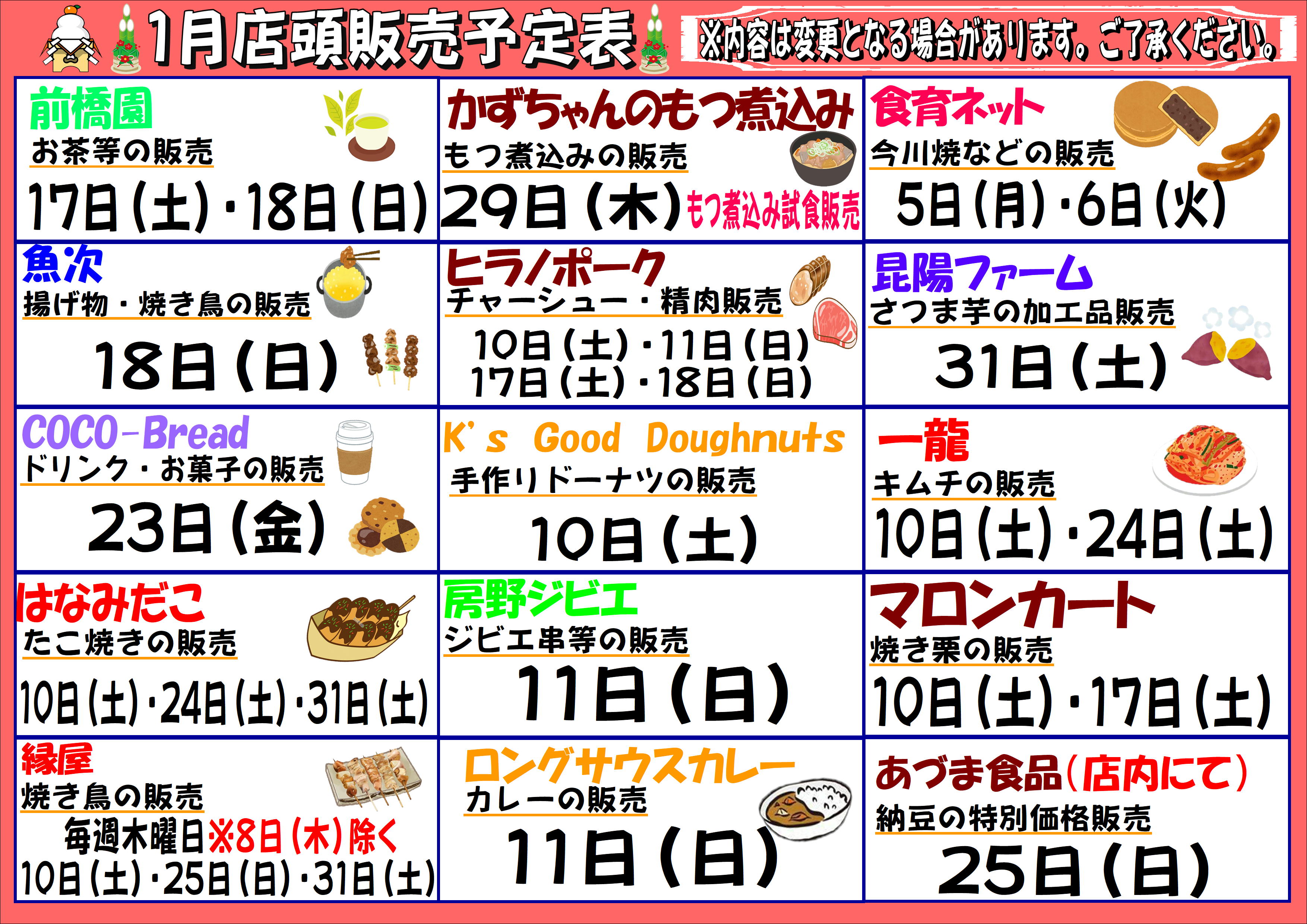 ◇1月のしょいか~ご千葉店情報◇