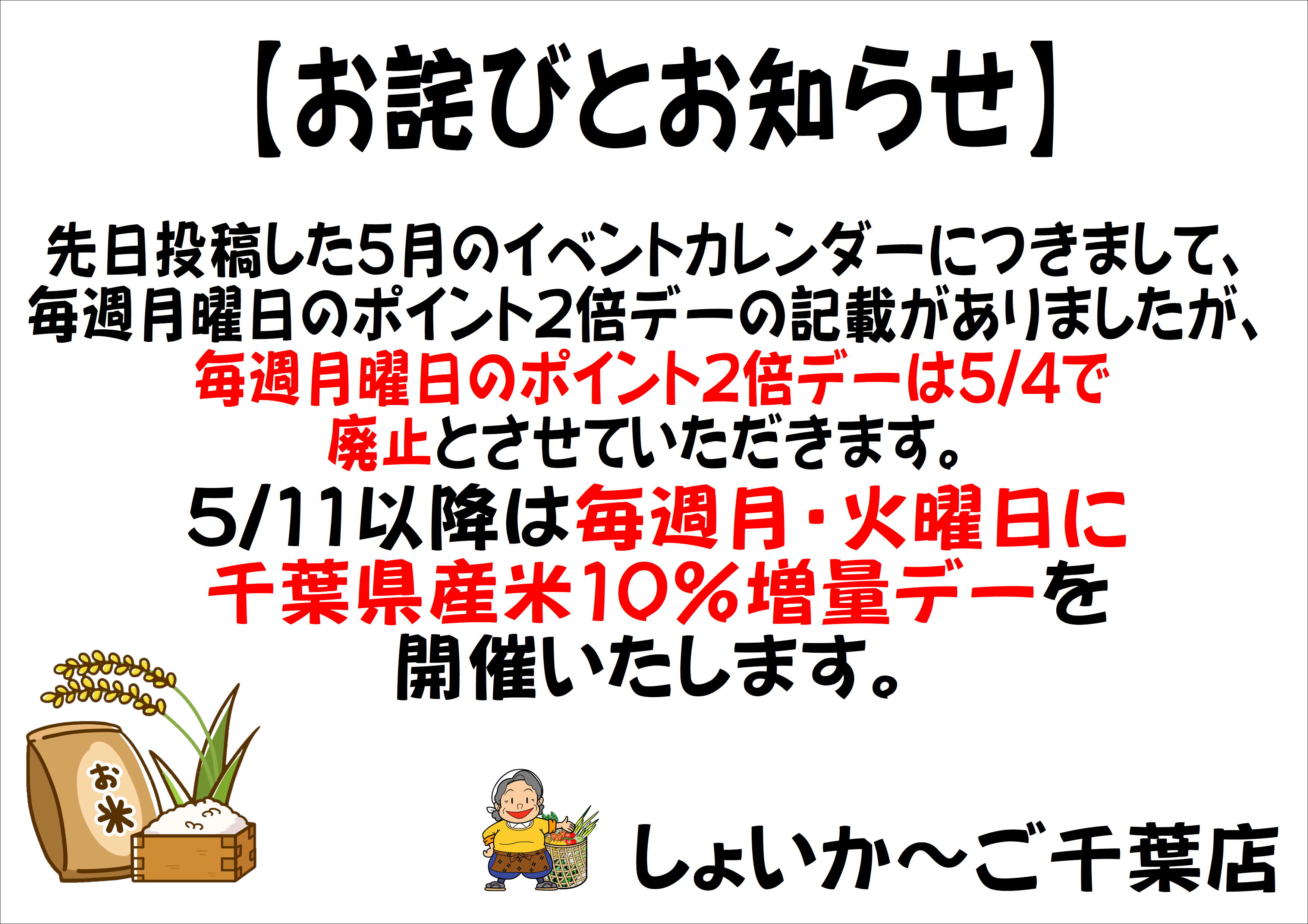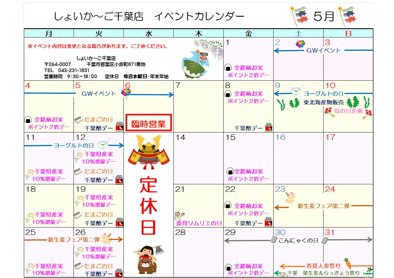 ◇5月のしょいか~ご千葉店情報◇