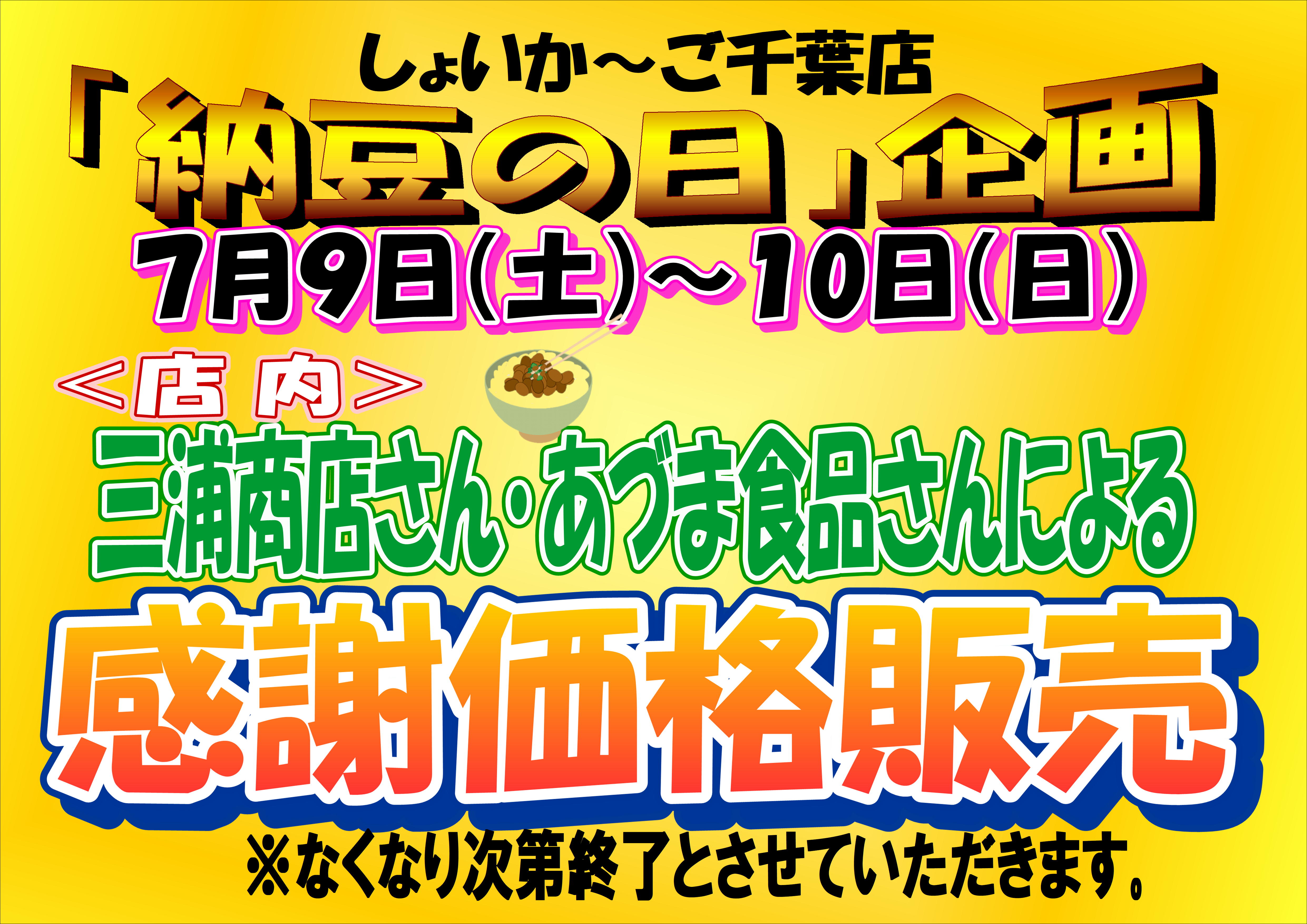 7月9日(土)・10日(日)は「7」「10」納豆の語呂合わせで