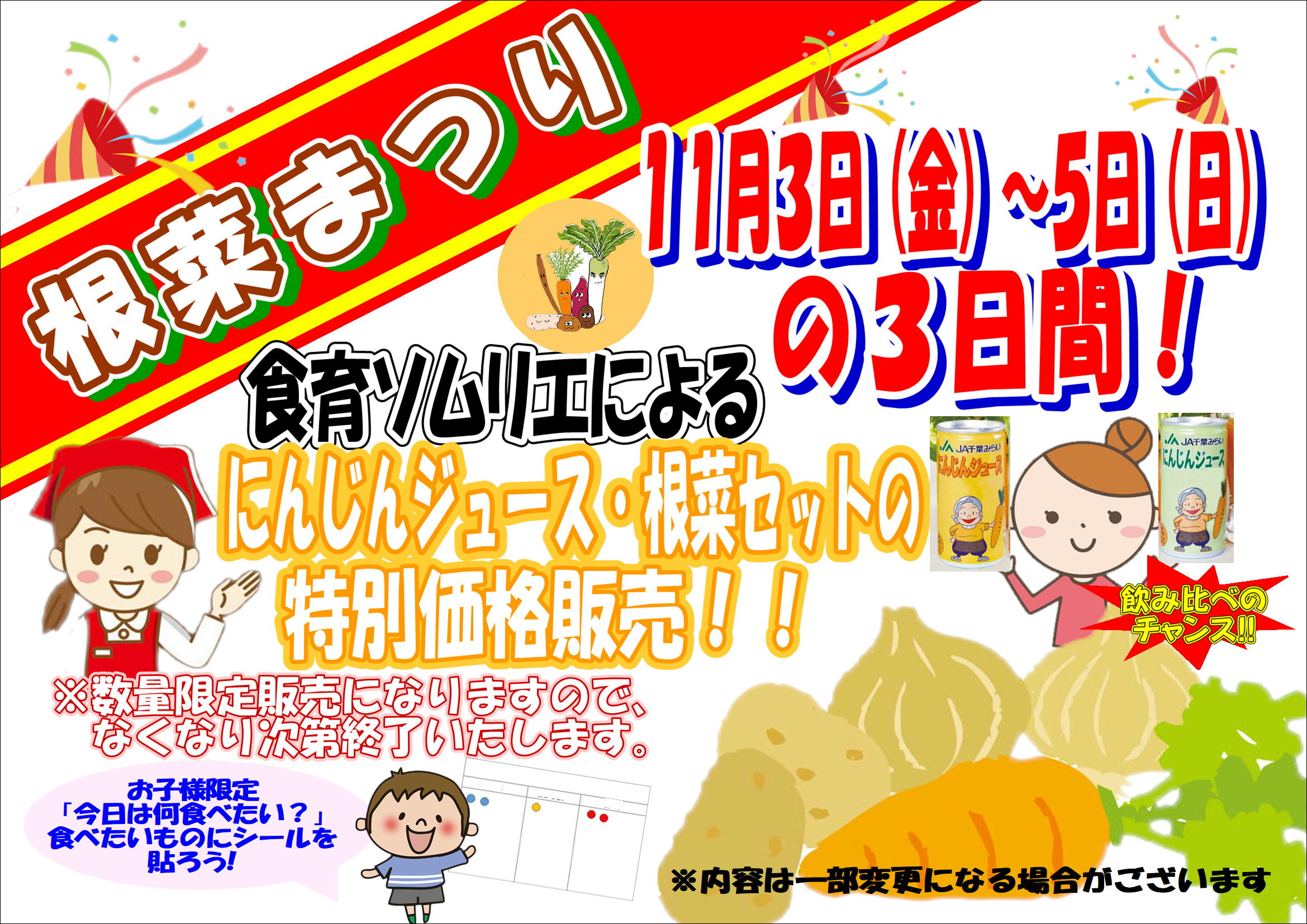 11月3日(金)~5日(日)の3日間、根菜セットの特別価格販売や、