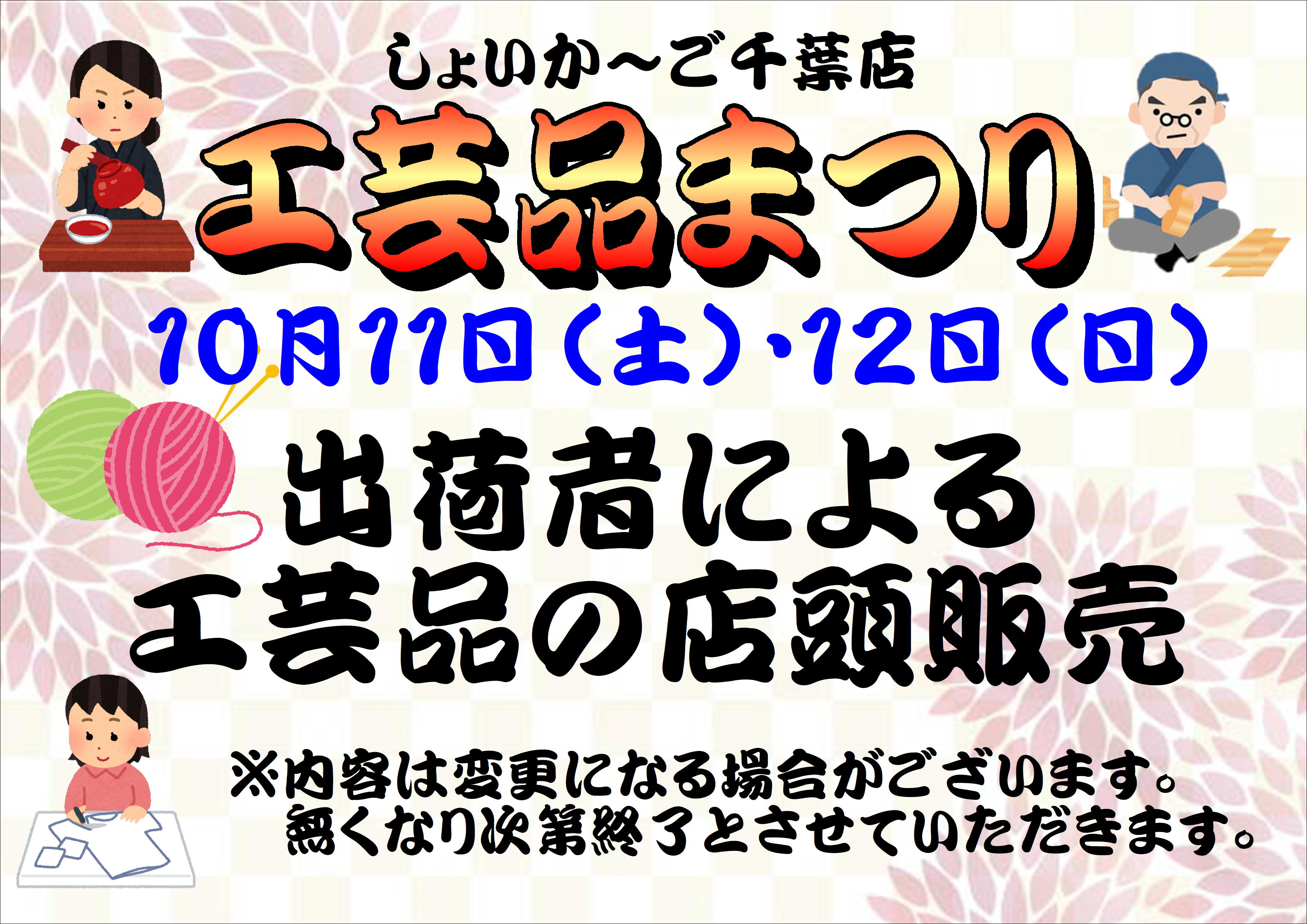 10月11日(土)・12日(日)は工芸品祭り!!