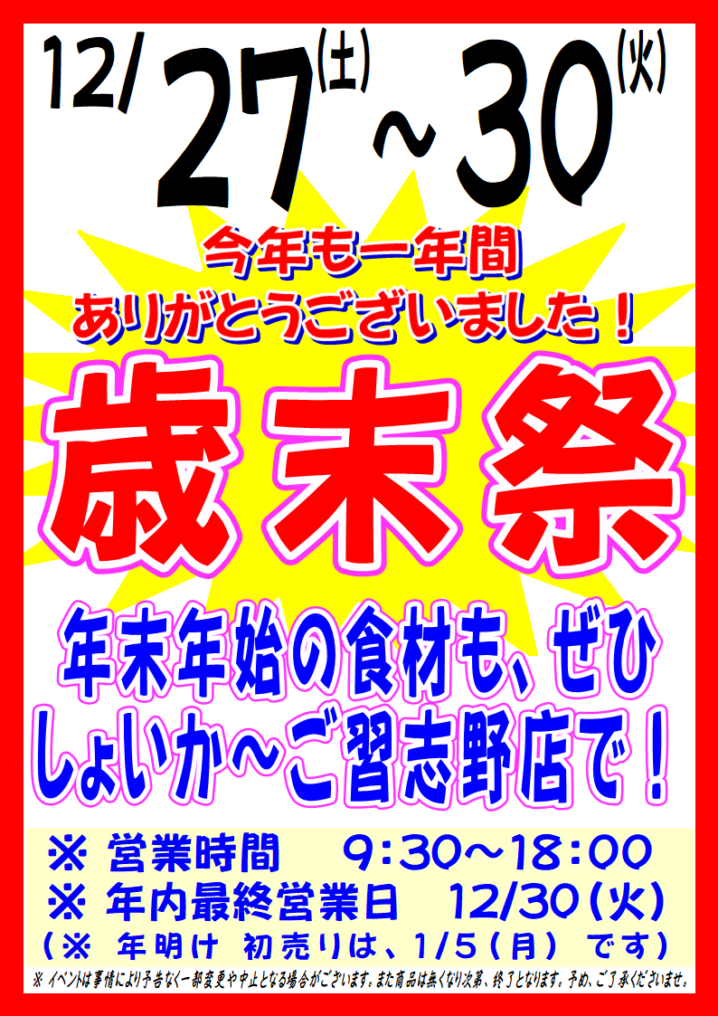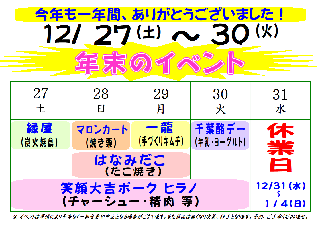 12/27~30 「歳末祭」&年末のイベント