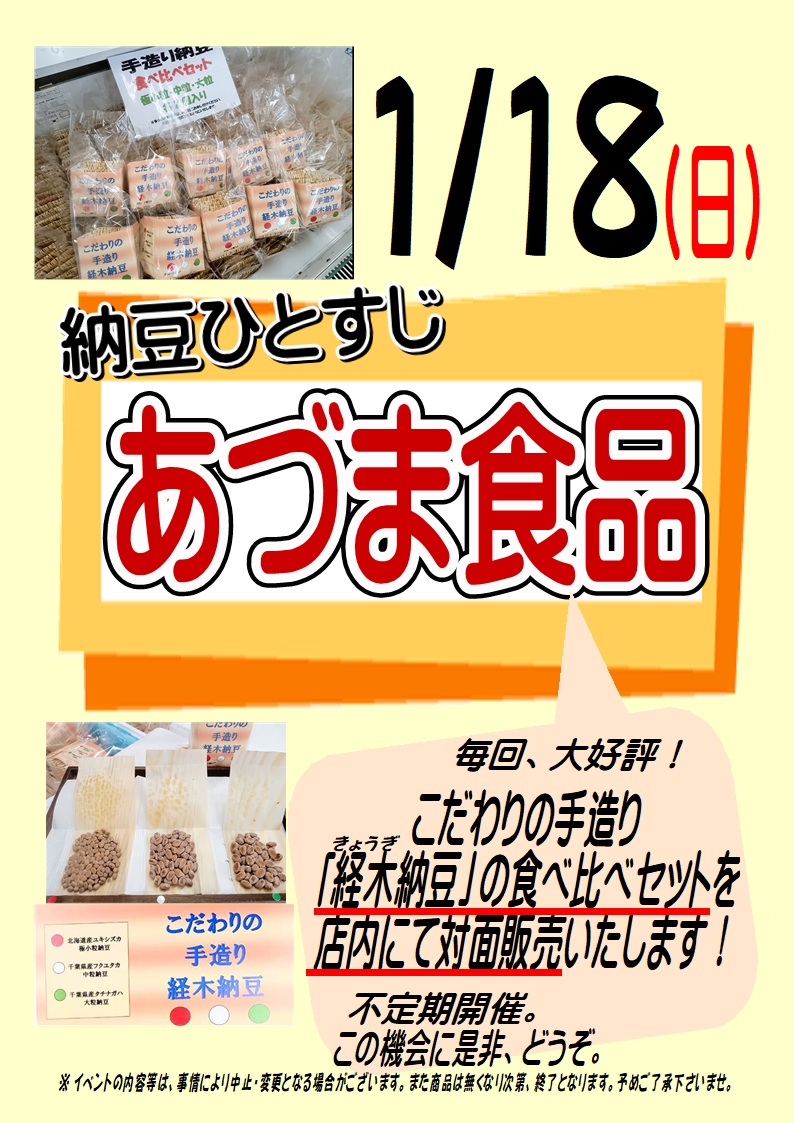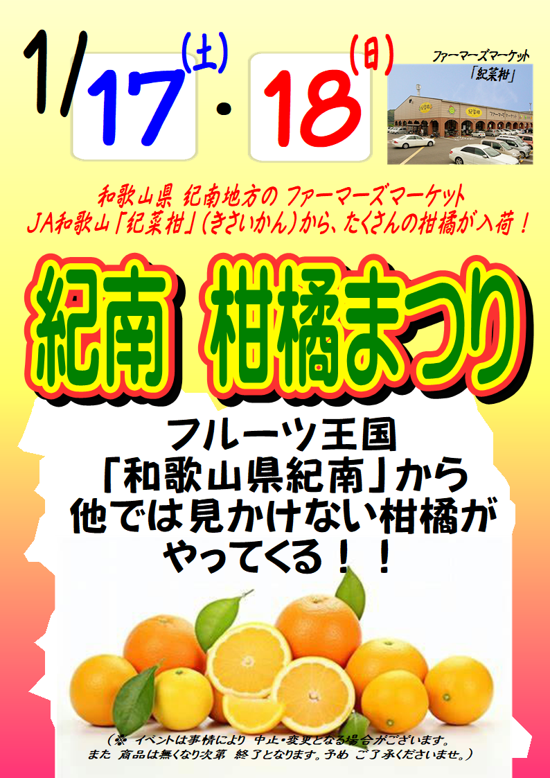 1/17(土)・18(日)「紀南 柑橘まつり」 & 1/18(日)「ギノー味噌イベント」&「あづま食品:納豆の対面販売」