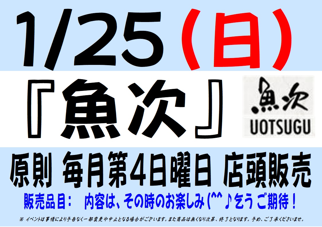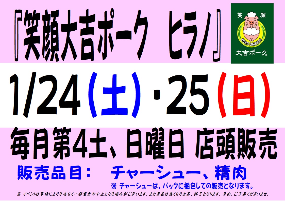 1/24(土)・25(日)に 以下の店頭販売を実施致します。