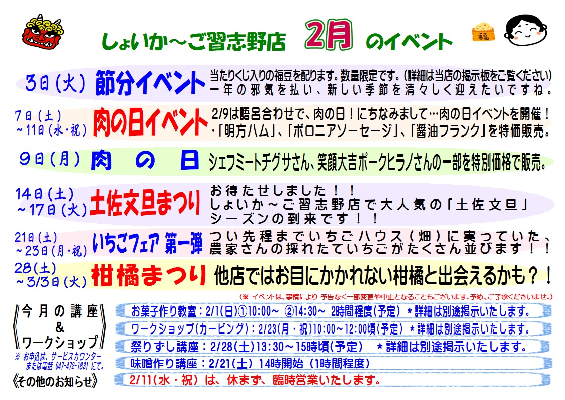 ☆2月のしょいか~ご習志野店情報☆