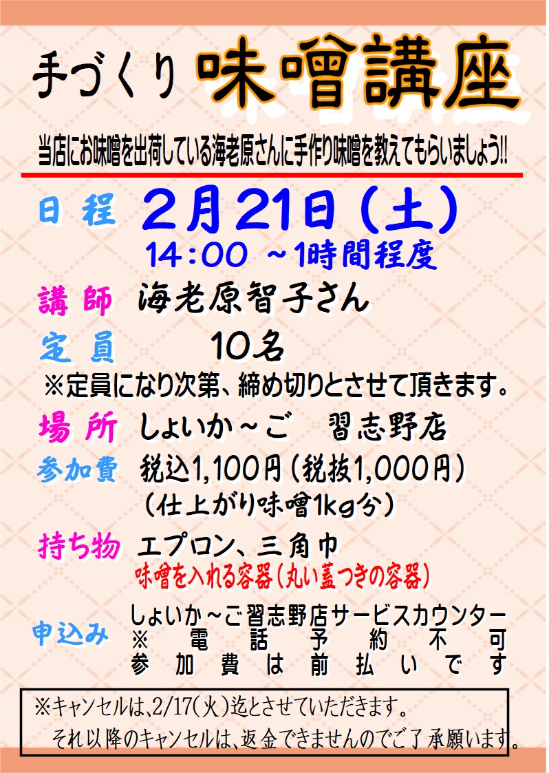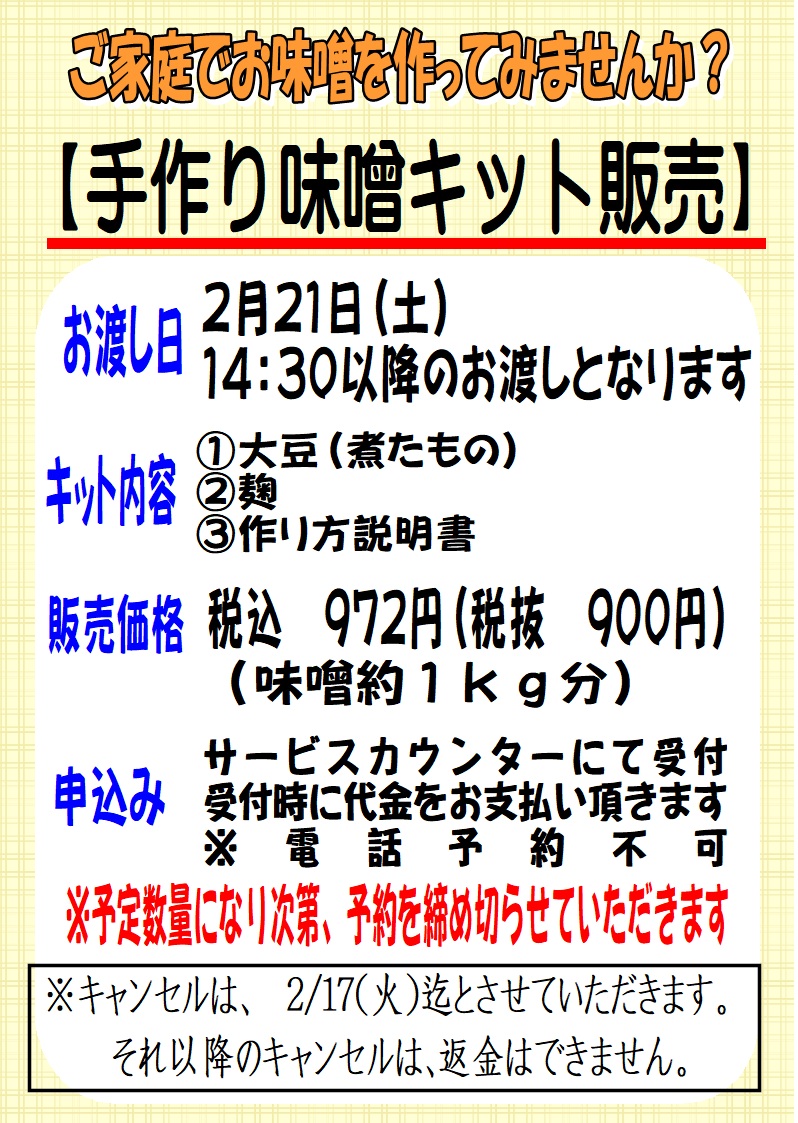 2/21(土)味噌講座&味噌キット