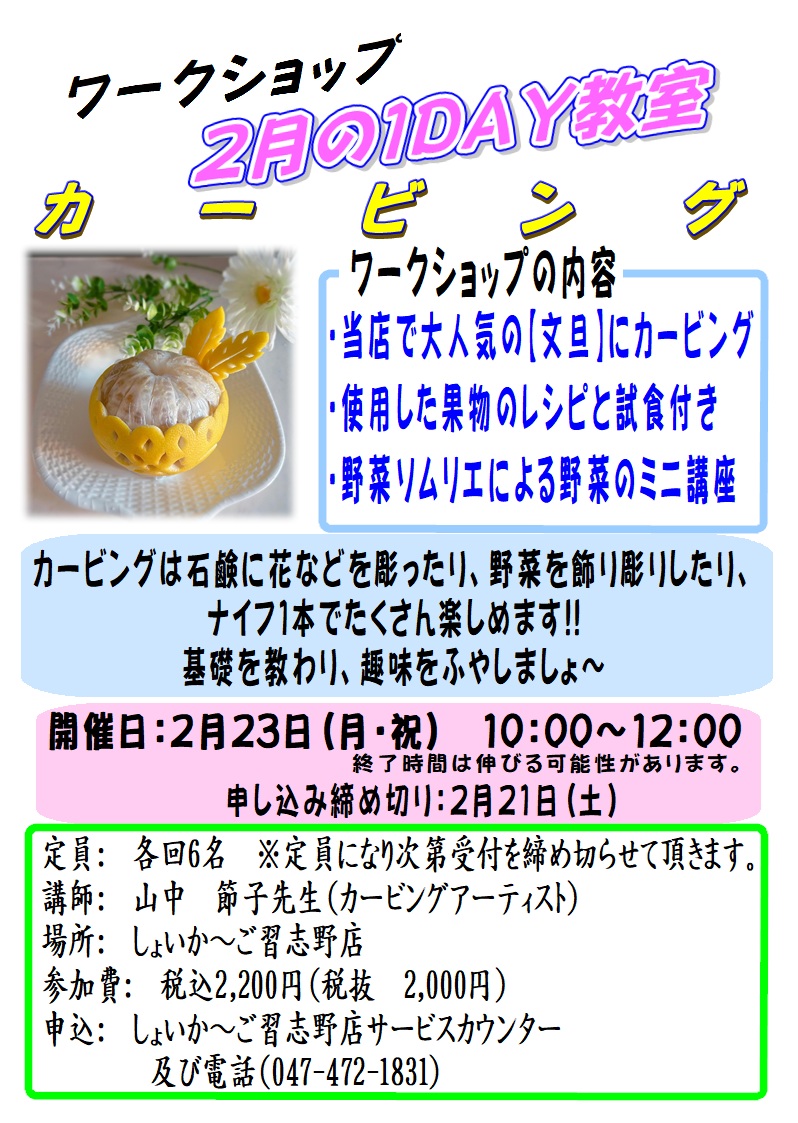 また、23(月・祝)には、文旦を使ったカービング教室も開催いたします。